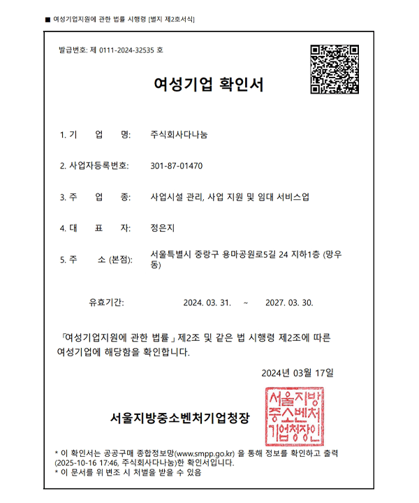 ¿©¼º±â¾÷ÀÎÁõ