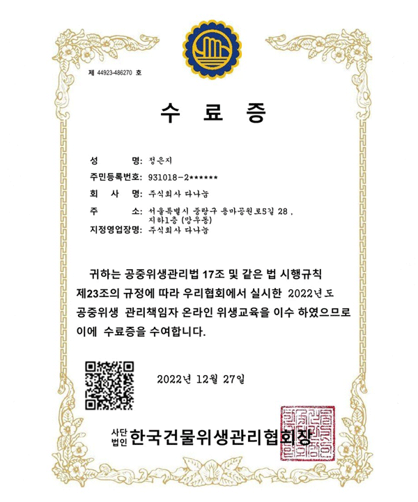 °Ç¹°À§»ý°ü¸®¾÷Á÷Á¢»ý»êÈ®ÀÎÁõ¸í¼